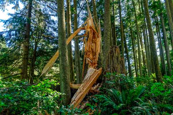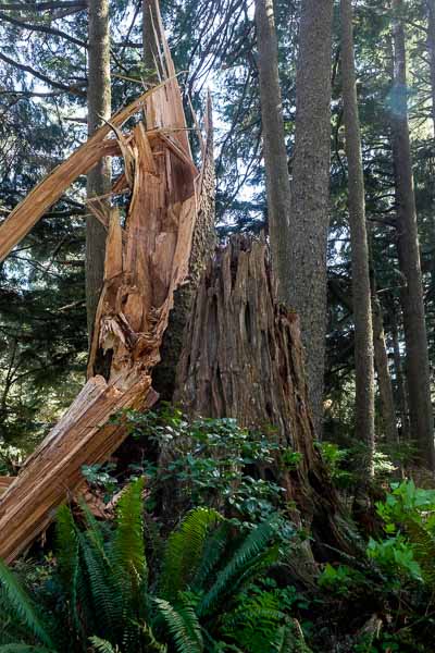 A giant tree was sheared off in a storm this winter. There is so much damage to the trail system that the North Beach trail is closed.