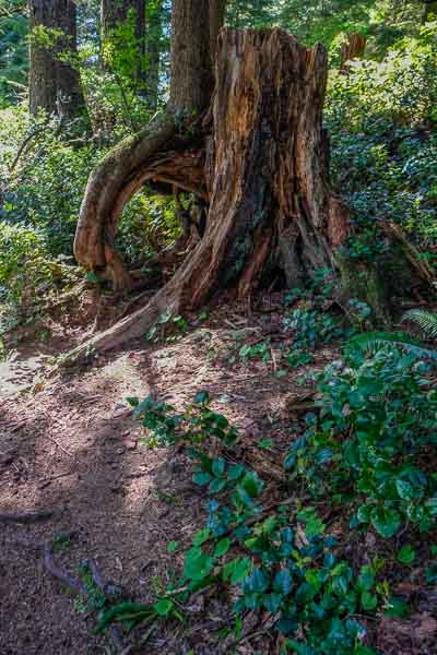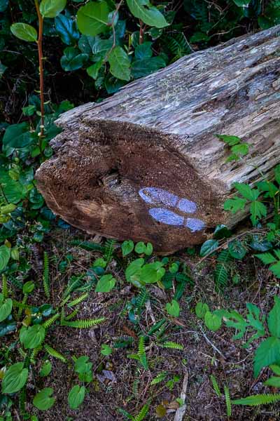 We weren't supposed to notice these purple printed footmarks. While most who take this trail innocently make a trip to and from the Giant Spruce - those in the know are instructed to look for the purple feet that lead them to a secret underground chamber. The chamber leads to an alternate underground path that delivers the insider to the Giant Spruce through it's root system and indeed to the interior core of the tree itself. So much for a natural phenomenon. The convincing tree like exterior is certainly covering up yet another in the series of Wildfire projects.