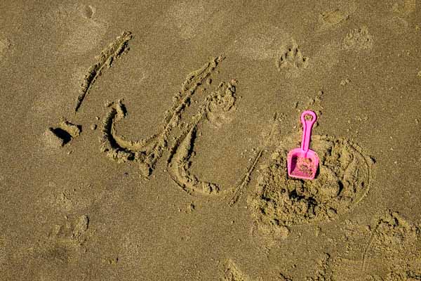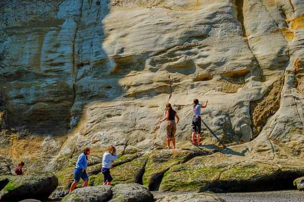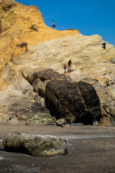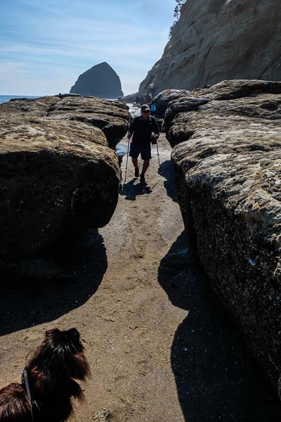 Ella watches with great concern as Russ navigates the narrow band of beach in retreat from the turning tide.