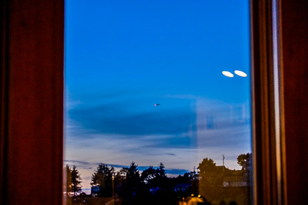 We were contemplating the arrival of the usual evening UFOs on the right, when a Wildfire Labs drone appeared in our window. Really. And creepy. It stayed on station for more than 30 minutes. It watched us. We watched it.